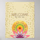 This is a beautiful poster with the size of 8x10 inches having the watercolor lotus flower where the background of yellow golden circular shape with damask curves to resemble ethnic style on golden dots falling from the above as of confetti style will give elegant look.