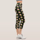 Pink Lotus Flowers & Lily Pads on Black Capri Leggings