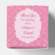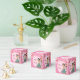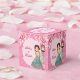 Pink lotus flowers with cute Indian bridal couple personalised wedding thank you favour boxes.
