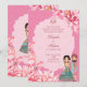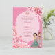 Pink lotus flowers with cute Indian bridal couple personalised wedding invitation. Can change function - wedding, reception, sangeet etc