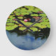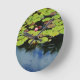 Pink lotus in Rain Round Clock