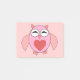 This awesome pad of post it notes features a cute cartoon of a pink owl with sleepy eyes, a small beak and cute little feet. The owl has a big red love heart in the middle of its belly and wings wide open ready to give someone a big hug.