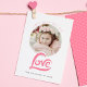 Pink Love Heart Valentines Day custom Photo Card