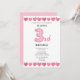 Pink Love Hearts 3rd Birthday Photo Invitation