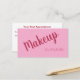 This Pink Magenta Makeup Artist Appointment Card is easy to personalise online before ordering. The front of the card features the word “Makeup” in a fancy swirly script in a cherry magenta colour, on a pretty light pink background along with personalisation for the name of the makeup artist. The back of the card features cherry magenta colour text and also space for appointment details to be written by hand when the card is in use. There is personalisation for salon address (or other wording of your choice, for example areas covered if you are a mobile-based business) and also for business phone number.
