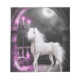 This Shades of Rage original & unique graphic design features a beautiful mystical white unicorn standing on a vibrant pink and black Smokey backdrop with a Smokey moonlight night sky.