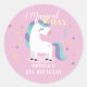 Featuring a pink unicorn with pastel stars and confetti, these stickers are perfect for party favours and decor.