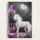 This design features A beautiful mystical white unicorn standing on a vibrant pink and black smokey backdrop with a smokey moonlight night sky.