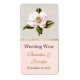 Elegant wedding mini wine labels ready for you to personalise with your own information. Graphics of a dark ivory linen look, on the top of the label, with a solid pale pink, on the bottom half of the label. Graphics of a gold tone line separates the two backgrounds, in the middle, and vintage graphics of a pink magnolia bloom decorates the top. Text, in black and golden brown, is fully customisable to suit your wedding needs. Great for your wedding reception table or gift wines.