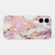 This image displays an elegant and luxurious pink marble texture, infused with veins of gold and white. The pink background varies in saturation, ranging from soft blush to deeper rose hues, creating a vibrant yet soothing visual. The golden veins add a rich, opulent touch, intricately winding through the marble with organic shapes and shimmering highlights. This art style is reminiscent of high-end interior design materials, emphasizing natural patterns and colors enhanced to showcase depth and luxury.