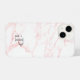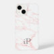 Pink marble stone custom monogram iPhone 14 Case. Elegant design with personalised text or monogram name initials. Beautiful protection covers for him or her. Customisable phone cover for your smartphone. Also available on other and older models.