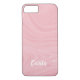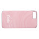 This custom iPhone 8/7 case features a pink marble textured abstract design. At the bottom of this case, you can personalise it with your name or initials by using the custom template. Other case options are available.