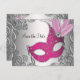 Beautiful pink masquerade party save the date postcard. You can delete the silver from the back side if you want white or to add the background colour of your choice.