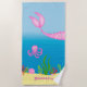 Personalise this bright colourful towel for the pool or beach with your child's name or other optional text. Super cute underwater scene features a pink mermaid tail, a pink octopus with shells and coral reef accents. Just edit your text in the easy Zazzle editor. See collection of coordinating designs at KidsUnique Gifts on Zazzle.