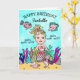 This cute mermaid card was hand drawn by myself, and features a pretty blonde mermaid with her freinds, the octopus, fish, starfish and coral. The inside of the card has a bonus page for the birthday girl to color! Hope you like it and thank you for looking! All my cartoon drawings were inspired by my own little grandkids.