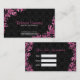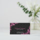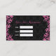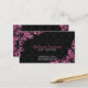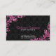 Elegant pink metall floral lace swirls over black floral damasks pattern, business card template. For Event designers, wedding planners