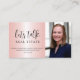 Let's talk real estate! Promote your business with this professional, pink metallic business card. Customise your contact info, photo, and logo.