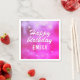 Pink Metallic Foil Star Girly Happy Birthday Napkins. The design has stars on a vivid pink, purple metallic background. Add your name.