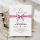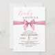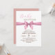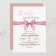 Baby Shower girl pink cute bow Invitation Template is perfect for baby girl shower party. Elegant-minimalistic themed invite is full of fun and cute design elements like baby shower party, pink and brown font with elegant calligraphy on a white background. Baby parties are special, and this invite can help it make a memorable baby shower party.