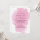 This wedding invitation features a pretty pink watercolor mist. Background colour and text fields can be customised to your liking.