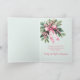 Lovely mistletoe is well known because of the Christmas tradition of "kissing under the mistletoe". However, families are included, too! Here is a beautiful vintage watercolor that highlights the variety of the Yuletide plant that has pink berries. It is on a light bluish background. We think you will enjoy how this pattern looks in this fine folded holiday card that features a nice family photo. We show the gals in the family in our example photo, but you can have guys, of course, in your own replacement photo. We hope you like the joyful pink "Merry Christmas". Be sure to change the example date to your own year. On the inside of the card is a pink mistletoe bouquet with seasonal ribbon. You can enter your own greeting or keep our example paragraph. Also, edit the "from" names to your own choice.