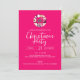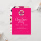 Vibrant pink modern Christmas party invitation. Stylish typography design with burgundy and pink geometric pattern with mistletoe backing.