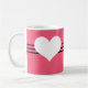 Sweet and charming Modern Heart Mug featuring a magenta background and a cute heart and striped border. This cute and girly mug is perfect for enjoying your favourite hot beverage! Customise with the text of your choosing. Click on "Customise" to find additional personalisation options.
