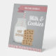 An adorable Modern Milk and Cookies Striped pedestal sign that's great for a baby shower. The colours are grey, pink, brown and white. It's a modern flair. The design has a stack of chocolate chip cookies with a bottle of milk.