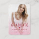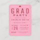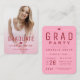 Modern and minimal typography graduation announcements with photo, fun graduation party invitation on the back in bright pink, red and white, Custom it with your own photo and party information.