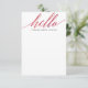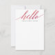 This modern flat note card features calligraphy script "hello" in gorgeous pink watercolor with your name below.