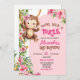 Pink Monkey Young Wild Three Third Birthday Invitation