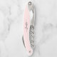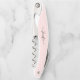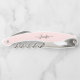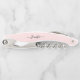 Create your own custom, personalised, classy modern elegant black calligraphy typography script font monogrammed on light pastel pink background, chic stylish cool contoured ergonomic handle bottle opener featuring a stainless steel foil cutter blade, a beer bottle cap opener, and a steel spiral corkscrew wine bottle opener. Simply type in your name / family name, to customise. Makes a great gift for birthday, christmas, holidays, wedding, mothers day, first home / housewarming gift, grandparents day, family reunions, friendship day, special tastings, milestone birthdays, and more, for your loved ones, mum, dad, girlfriend, boyfriend, husband, wife, couples, newlyweds, corporate clients, employees, boss, new parents, beer lovers, wine connoisseurs, men, women, him, her, friends and family.