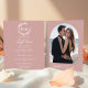 A simple chic floral faux foil monogram pink wedding invitation. Easy to personalise with your details. Modern boho wedding invitation editable, Arch Photo wedding invitation, customisable, calligraphy handwritten font, simple, elegant.