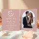 A simple chic floral faux foil monogram pink wedding invitation. Easy to personalise with your details. Modern boho wedding invitation editable, Arch Photo wedding invitation, customisable, calligraphy handwritten font, simple, elegant.