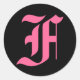 Pink Monogram F Classic Round Sticker