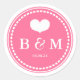 NewparkLane - Modern design, personalised Round Sticker, with a heart and your personal monograms in elegant font, in a hot pink circle.