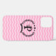 Personalised pink monogrammed chevron pattern iPhone 12 case Customisable background colour and zigzag size. Modern Zig Zag print design.