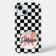 pink Monogrammed Flower black and white Chequered Case-Mate iPhone Case