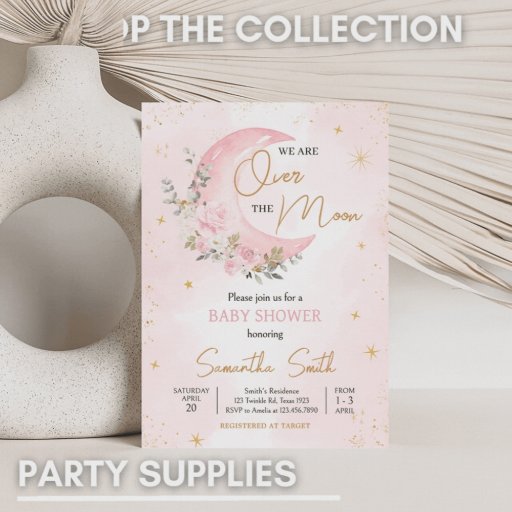Welcome your little one with our heartwarming Over the Moon Baby Shower Invitation Printable. Personalise to share the joy with your loved ones!