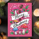 Pink Mushroom Merry Christmas Woodland Holiday Card