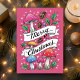 Celebrate the season with a unique twist! This pink holiday card features whimsical mushrooms, pinecones, and holly sprigs surrounding a festive "Merry Christmas" banner. Perfect for nature lovers, mushroom enthusiasts, and anyone who enjoys a touch of woodland magic in their Christmas greetings. Stand out this holiday with a card that combines festive cheer with an earthy, enchanted forest vibe!
