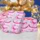 Pink named rocking horse 3rd birthday pattern wrap wrapping paper