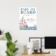 Welcome guests to your nautical-themed baby shower with this charming sign featuring a classic sailboat in the middle of a blue ocean, complete with a seagull perched on a rock. The boat has soft pink stripes on the sails, and a pink life ring adds a sweet touch to the maritime details. Blue water and rope accents help complete the coastal look.