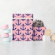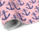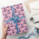 Pink, Navy Blue Anchors Pattern Wrapping Paper