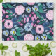 Pink Navy Blue Floral Bouquet Watercolor Pattern Tea Towel
