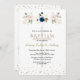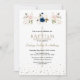 Pink Navy Blue Flowers Gold Triplets Baptism Invitation
