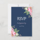 Pink Navy Blue Watercolor Flowers RSVP Card
