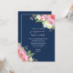 Pink Navy Blue Watercolor Flowers Weddings Invitation