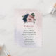 Unique seating chart table number card featuring romantic pink and navy flowers and green leaves.