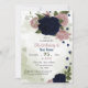 romantic pink and navy blue flowers and green leaves botanical birthday party invitation